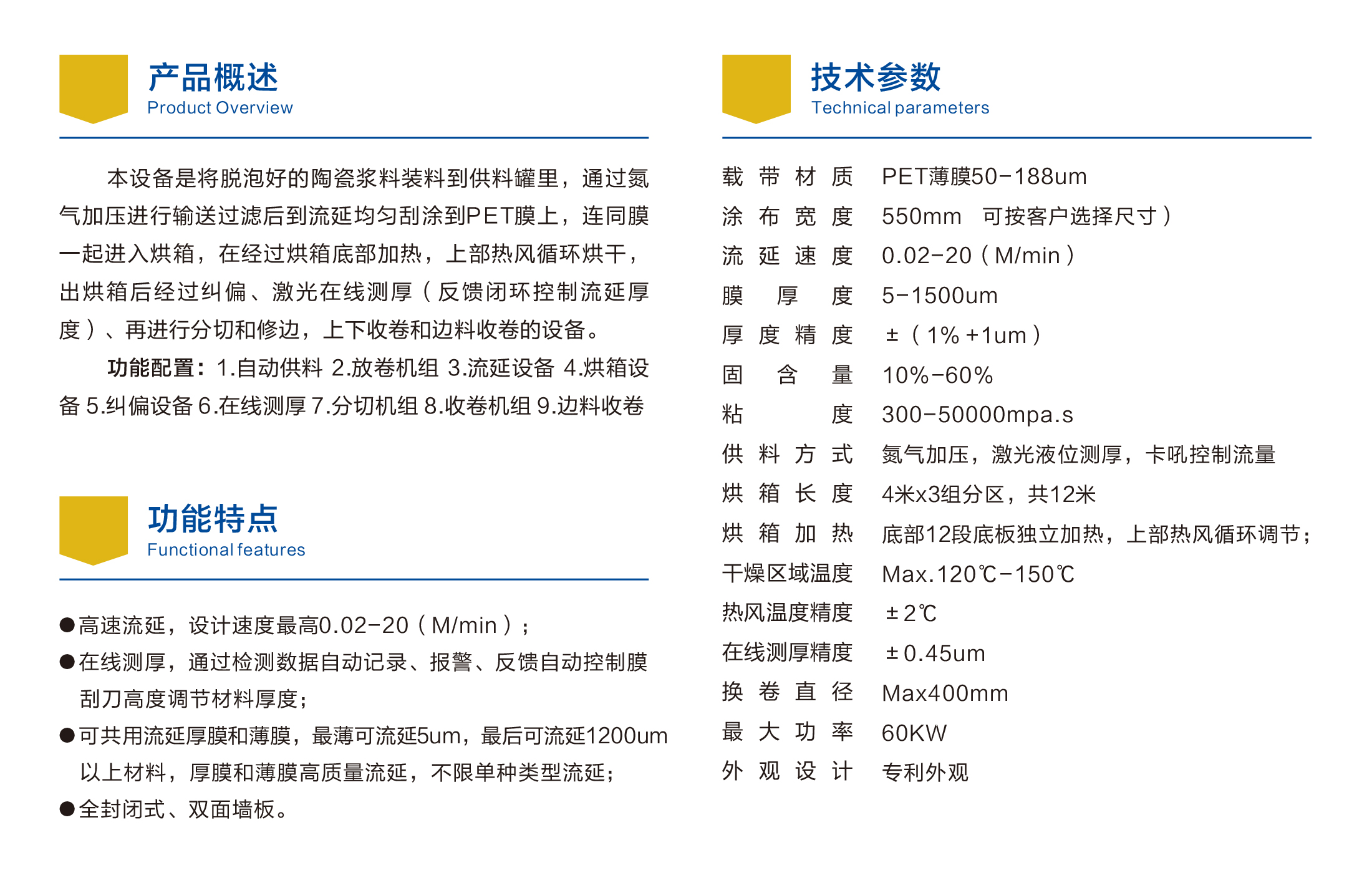 - Application scope: HTCC high-temperature co-fired ceramics, LTCC low-temperature co-fired ceramics, SOFC solid oxide fuel cells, MLCC chip-type ceramic capacitors, MLCI, SMD ceramic bases, MLCV chip-type varistors, automotive oxygen sensors.